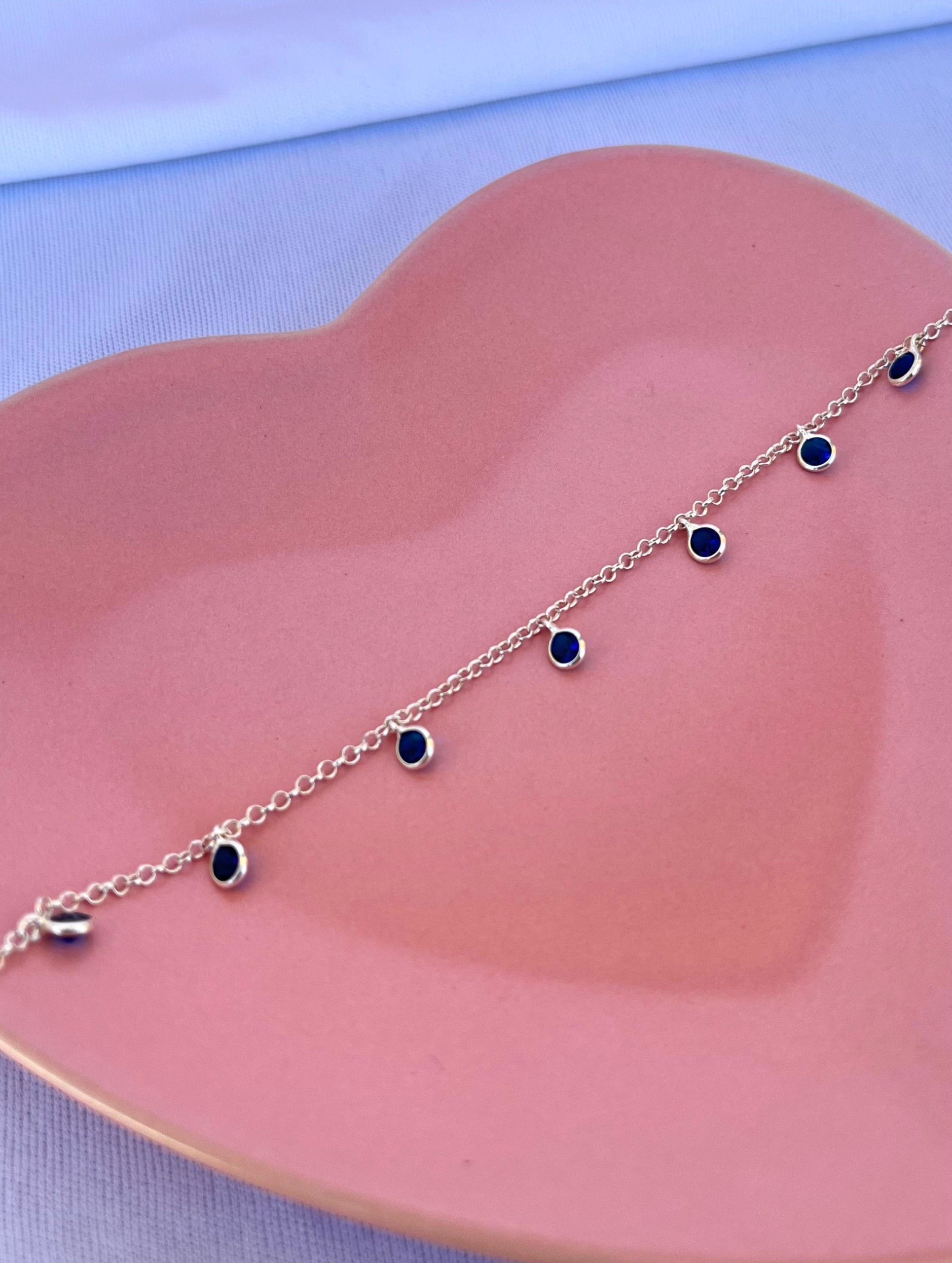 ✨ Pulseira 08 Zircônias Azul com Elo Português ✨