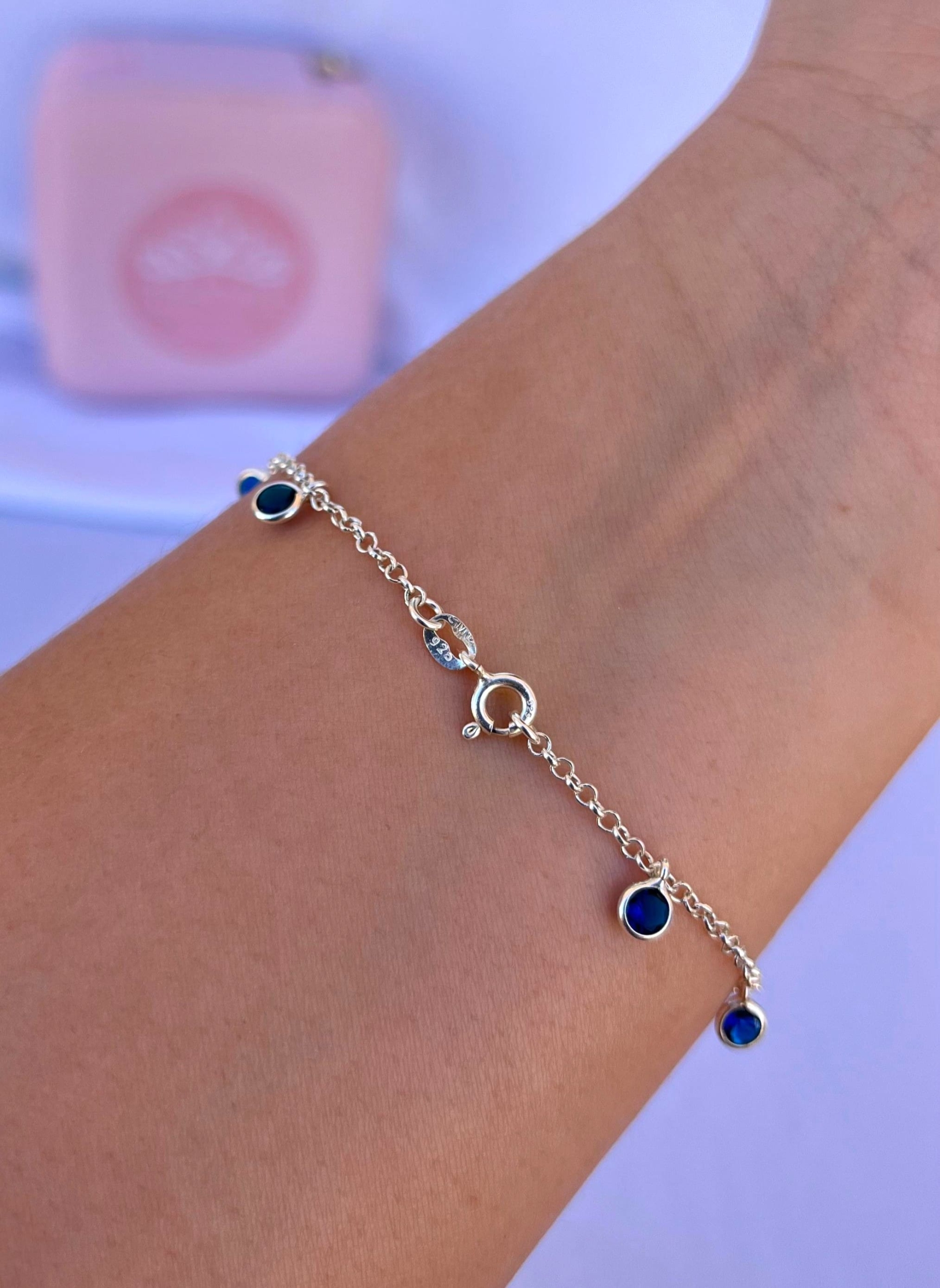 Confeccionada em Prata 925, a Pulseira 08 Zircônias Azul com Elo Português une elegância e brilho na medida certa. Seu design delicado valoriza o visual e pode ser usada sozinha ou combinada com outros acessórios.