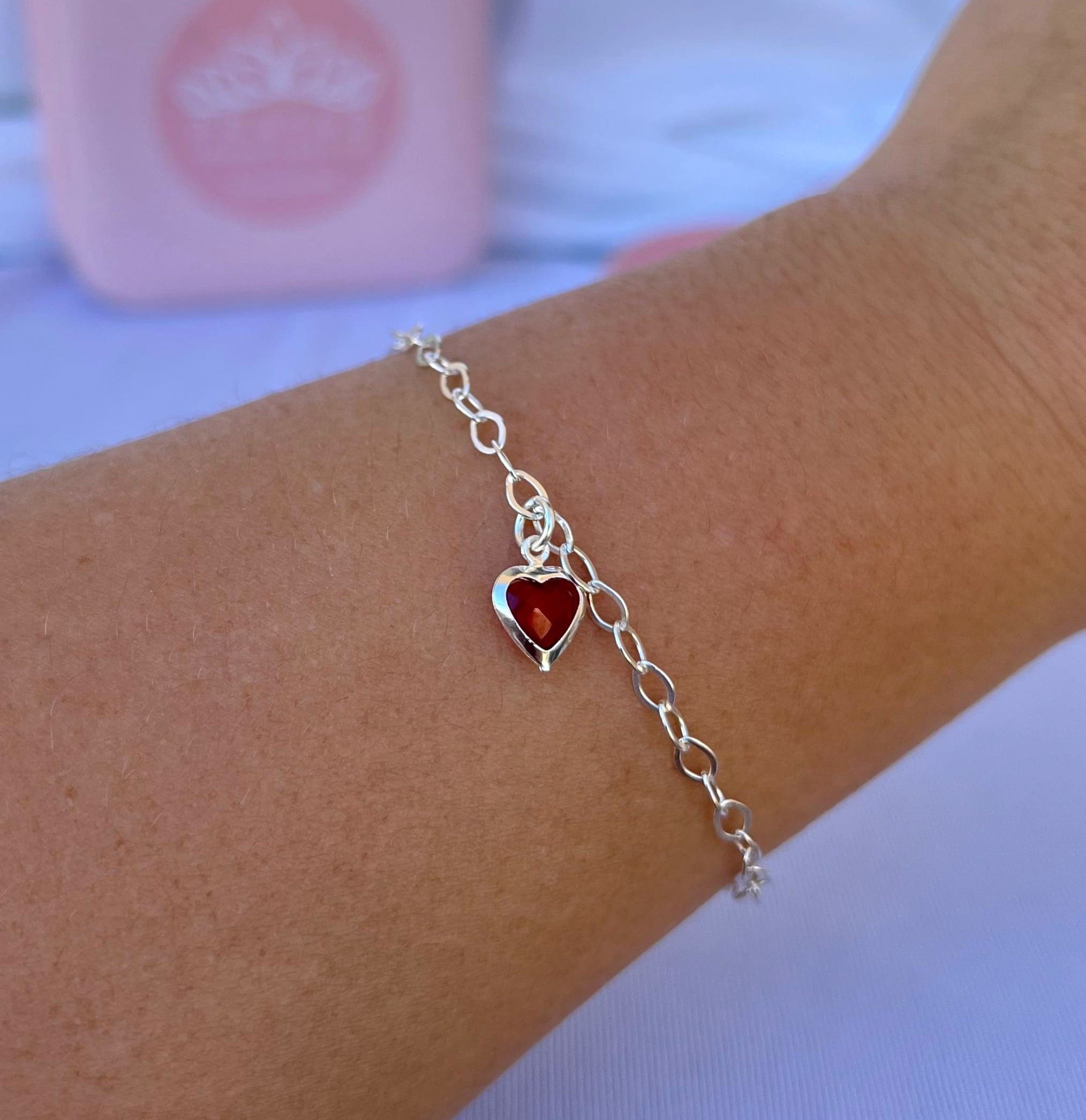 A Pulseira Elo Oval Coração Vermelho em Prata 925 é delicada e cheia de charme. Seu design romântico traz um toque de cor ao visual, perfeita para usar sozinha ou em combinações, garantindo estilo e delicadeza.