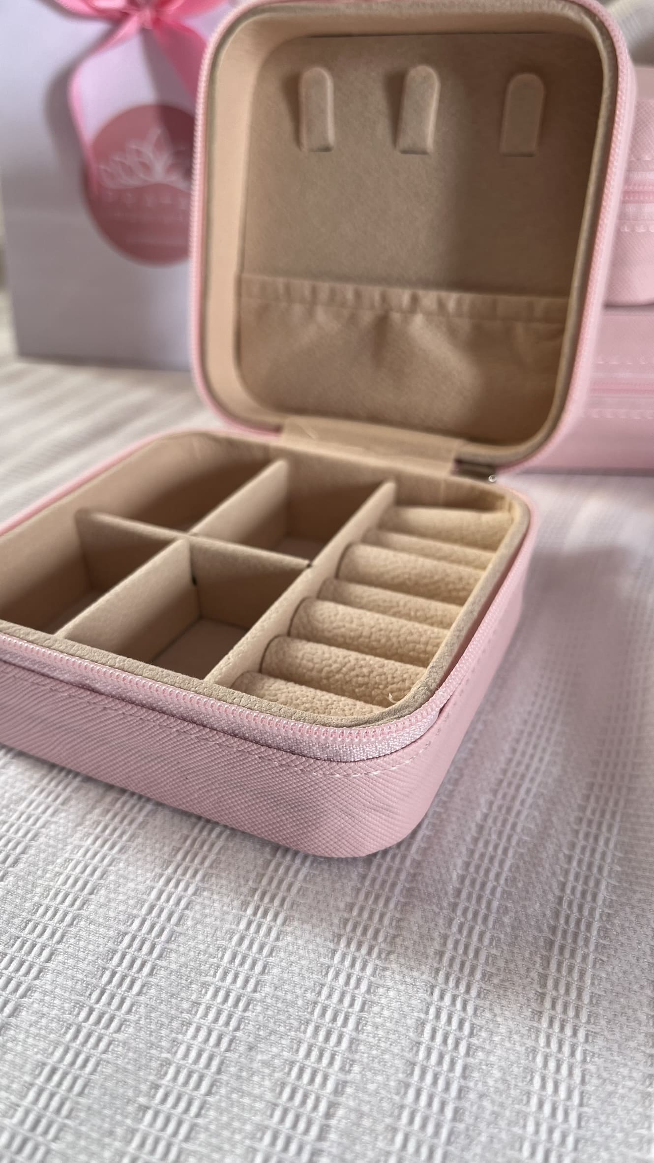 Você merece joias impecáveis, e nosso Porta-Joias Portátil foi projetado para elevar sua experiência de armazenamento e transporte. Veja por que é a escolha perfeita para quem busca praticidade e estilo: